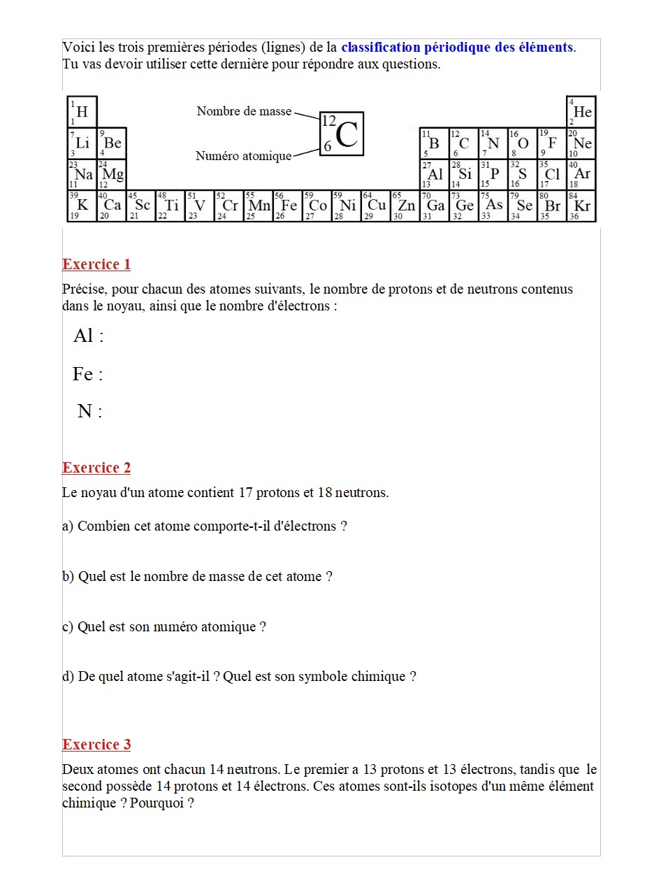 Pour revoir la structure de l'atome et de son noyau : !, ou !.